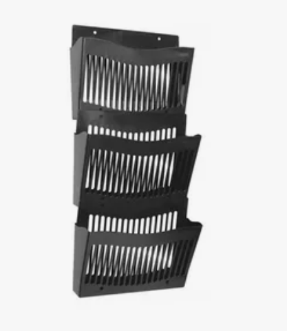 Лоток настенный для бумаг формата А4. Прочный, лёгкий корпус, сетчатая поверхность. Имеет два отверстия для крепления к стене. Крепёж в комплект не входит. Позволяет рационально использовать рабочее пространство. Изготовлен из качественного полистирола. Цвет лотка - черный.