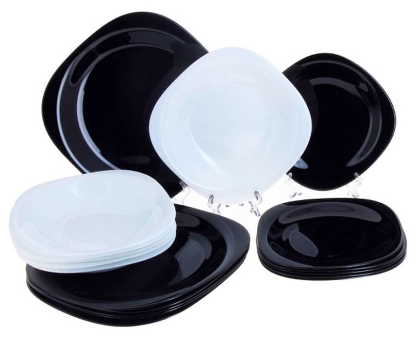 Столовый сервиз 18 предметов Luminarc КАРИН МОДЕРН, материал стекло, тарелка: обеденная 25 см-6 шт, суповая 21 см-6 шт, десертная 19 см-6 шт, цвет черный/белый