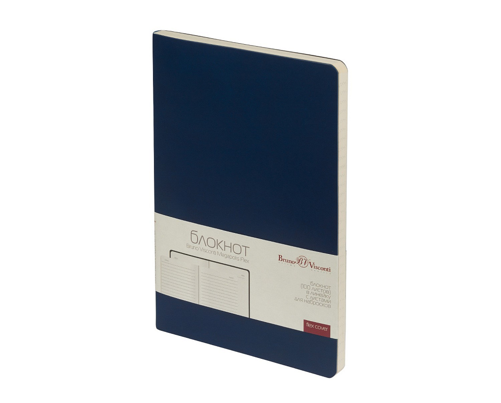 Ежедневник А5 недатированный Bruno Visconti "MEGAPOLIS VELVET FLEX" 100 листов в линию, 140х210мм, гибкая обложка, скругленные уголки, искусственная кожа, цвет темно-синий