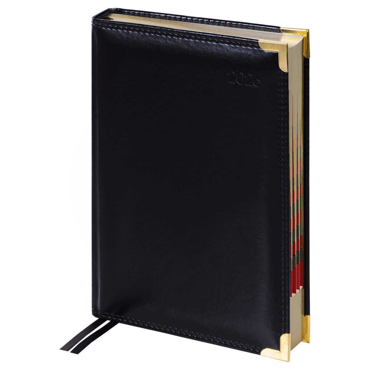 Ежедневник А5 датированный 2026 "Delucci" 184 листов в линию, искусственная кожа, размер 150*215 мм, ляссе, золотой срез, цвет черный