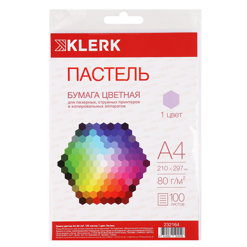 Бумага KLERK А-4 80 г/м2, лавандовый пастель, 100 листов. Бумага цветная лавандовый пастель, цвета применяется для печати на копировально-множительной технике, лазерных и струйных принтерах. Имеет микропористое покрытие, точно передает все оттенки, четкость изображения, мгновенно впитывает чернила и обеспечивает высокое разрешение. Одна пачка содержит 100 листов формата А4, плотность которых составляет 80 г/кв.м.