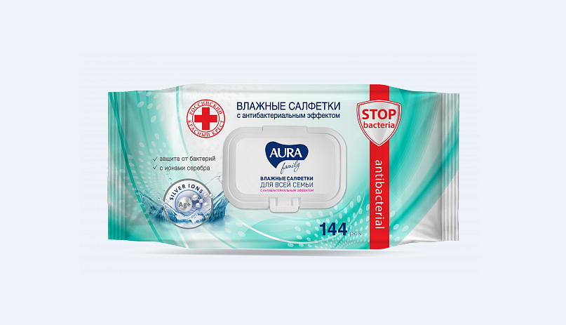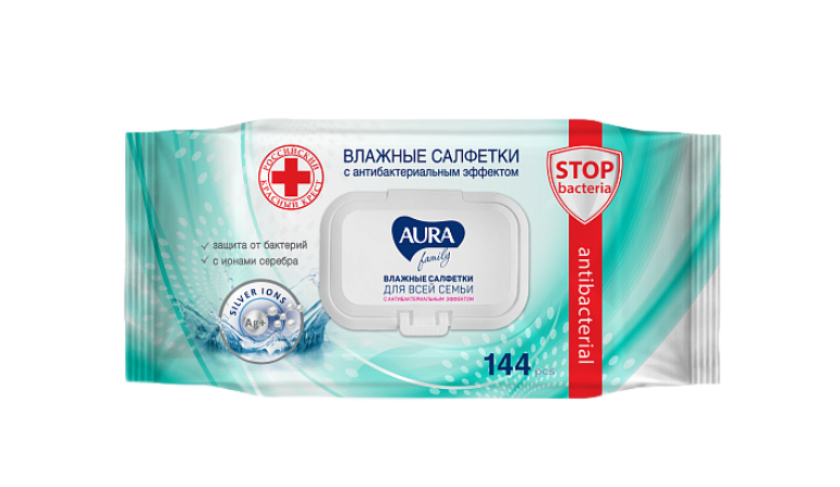 Влажные салфетки AURA Family с усовершенствованным антибактериальным составом с ионами серебра. Ионы серебра обеспечивают надежную защиту от бактерий. Научно доказано, что ионы серебра обладают бактерицидными, противовирусными, противогрибковыми и обеззараживающими свойствами. Очищающий лосьон разработан для ежедневного использования салфеток всеми членами семьи. Салфетки прошли клинические, микробиологические и токсикологические испытания.Большой формат удобен для всей семьи, а наличие крышки не позволит салфеткам высохнуть. В удобной упаковке с крышкой — 144 штуки.
