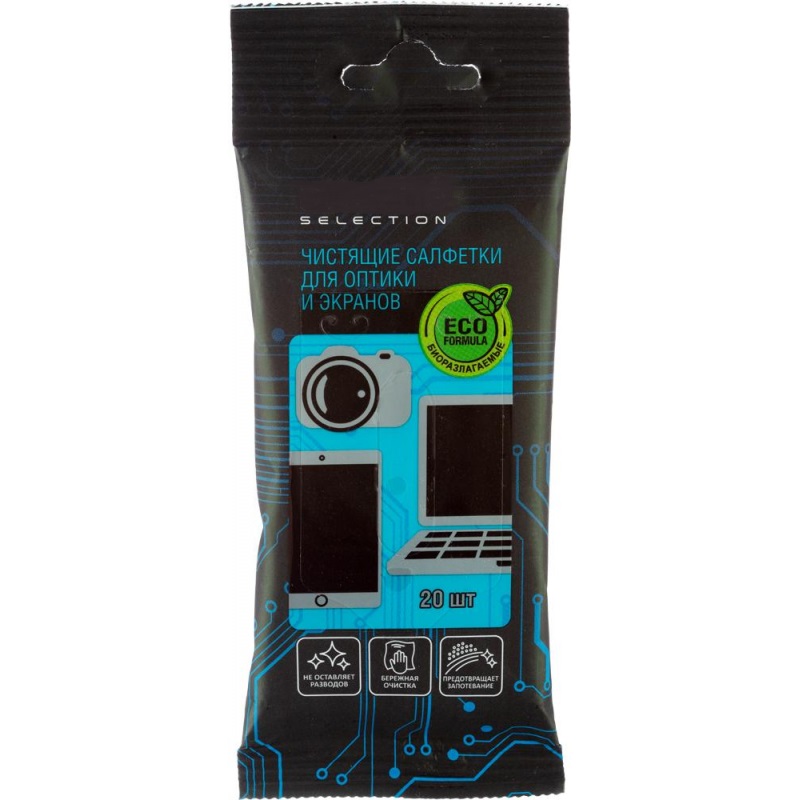 Салфетки влажные Selection 20 шт для оргтехнике, биоразлагаемые мягкая упаковка