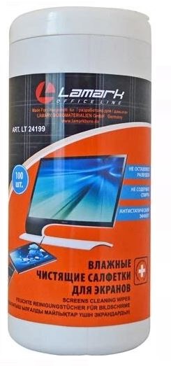 Салфетки влажные Lamark 100 шт в тубе для экранов мониторов, плазменных, ЖК телевизоров, ноутбуков.
