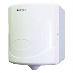 Полотенцедержатель для рулонных полотенец KSITEX AC1-16W, с центральной вытяжкой, механический, пластиковый, замок, размеры: 270х215х230 мм, цвет белый