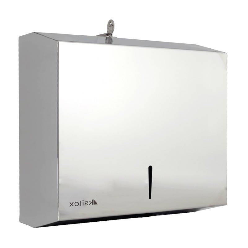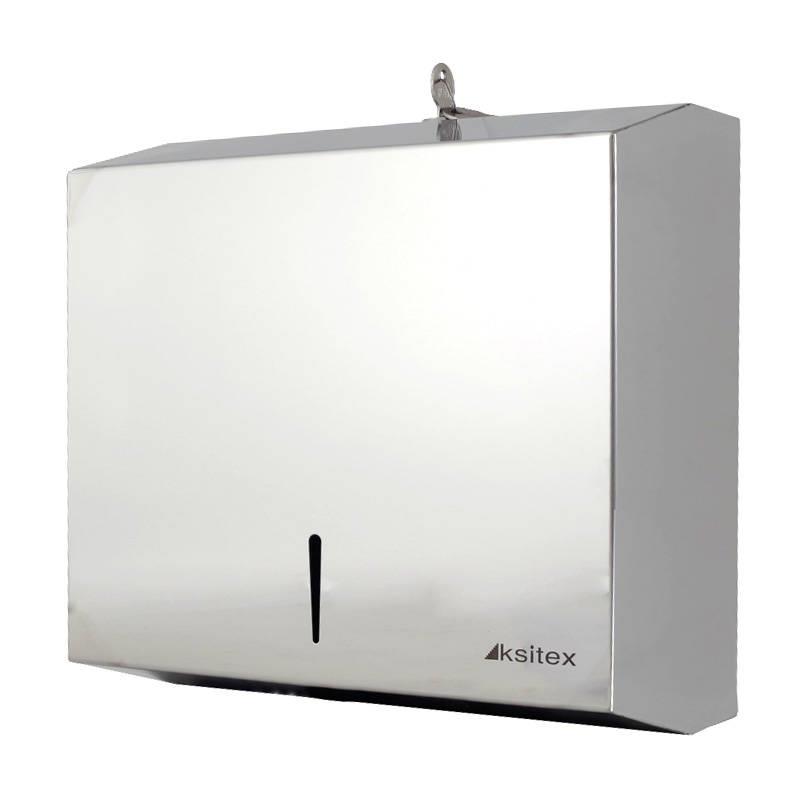 Полотенцедержатель для листовых полотенец V- сложения KSITEX TH-5823 SSN, рассчитан на 2-е упаковки полотенец, Нержавеющая сталь. Замок. Размеры: 265х267х125 мм, цвет блестящий хром