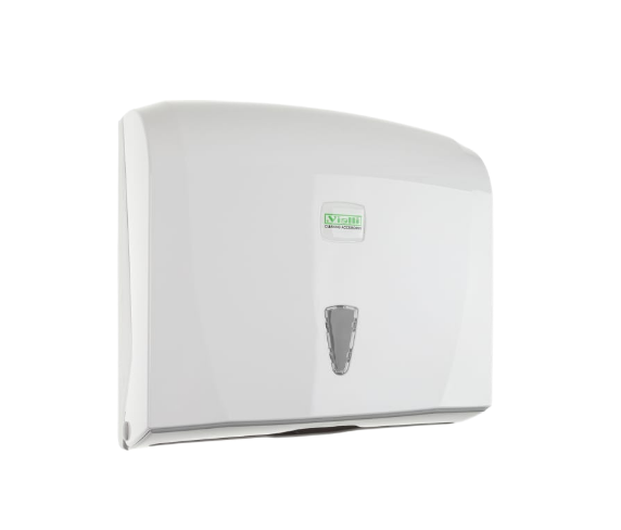 Полотенцедержатель для листовых полотенец Z- сложения, рассчитан на 1-у упаковку полотенец, ударопрочный пластик, пластиковый замок, размеры 270х110х270 мм. цвет белый