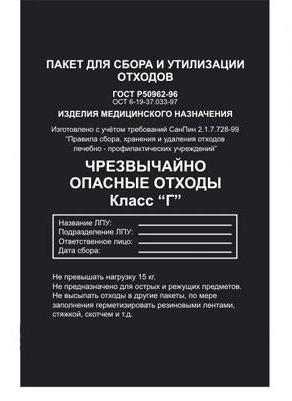 | Класс Пакетов для утилизации | Класс Г |