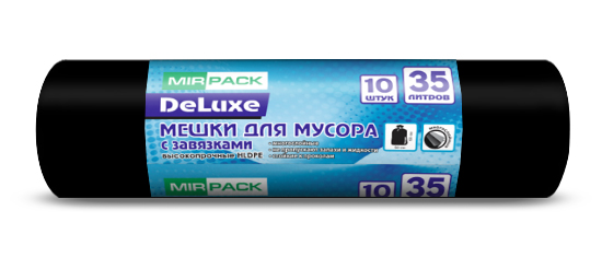 Серия «DELUXE» имеет не только уникальную структуру пленки и большую вместительность за счет удобных и прочных завязок , что гарантирует не только прочность , герметичность но и удобство при эксплуатации.