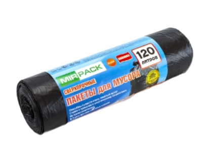 Мешки для мусора "MirPack Extra" ПНД 120л 10шт в рулоне, плотность 14 мкм, размер 70х110 см, черные
