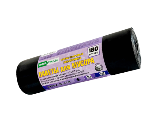 Мешки для мусора "MirPack" ПВД 180л 10шт в рулоне, плотность 50 мкм, размер 93х110см, черные
