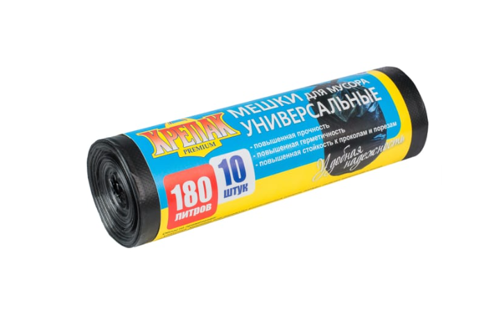 Мешки для мусора "Крепак" ПНД 180л 10шт в рулоне, плотность 20 мкм, размер 80х115 см, черные