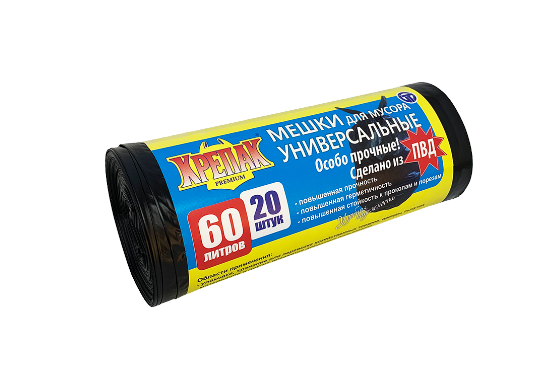 Мешки для мусора "Крепак" ПВД 60л 20шт в рулоне, плотность 35 мкм, размер 58х75см, черные
