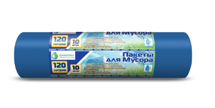 Мешки для мусора "MirPack GreenClean Classic" ПНД 120л 10шт в рулоне, плотность 12 мкм, размер 65х100см, синие, тип сварного донного шва "звезда"