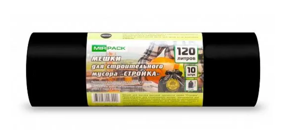 Мешки для мусора "MirPack Стройка" ПВД 120л 10шт в рулоне, плотность 70 мкм, размер 70х110см, черные