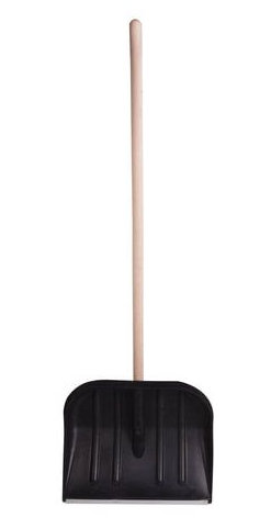Лопата СНЕГОУБОРОЧНАЯ пластиковая, оцинкованная кромка, деревянный черенок d 40мм, размер рабочей части: 470х405 мм. Общая длина 1350 мм.