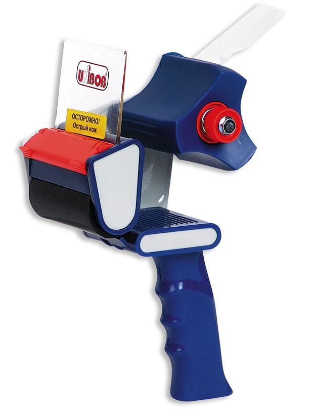 Диспенсер для упаковочных клейких лент шириной до 75 мм. Снабжен удобной ручкой, каучуковым валиком и отрезным металлическим ножом. Данное устройство позволяет максимально повысить производительность труда при ручной упаковке.