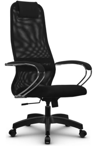 Кресло SU-B-8. Обивка - сетка/ткань-сетка, цвет черный. Хромированные подлокотники. Пластиковая крестовина. Механизм Топ-ган. Нагрузка до 120 кг.