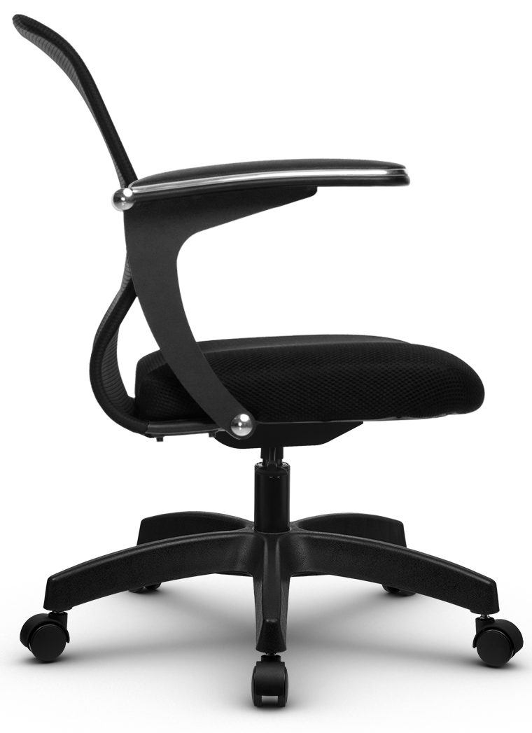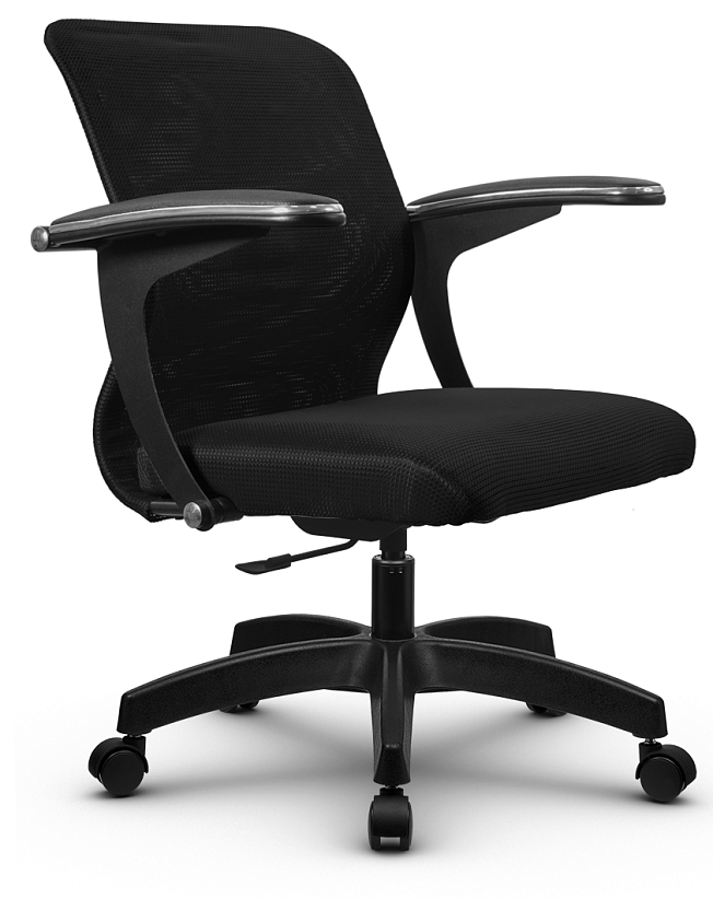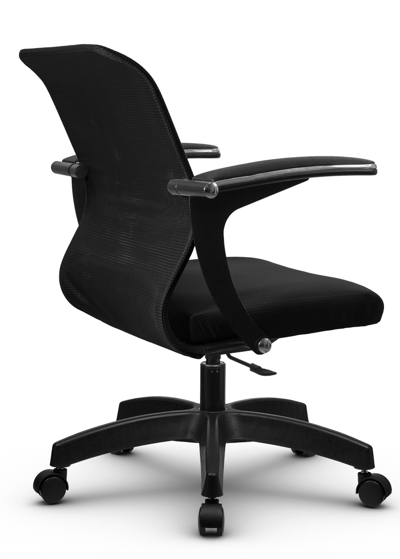 Кресло SU-M-4P. Обивка - сетка/ткань-сетка, цвет черный. Пластиковая крестовина. Механизм Пиастра. Нагрузка до 120 кг.