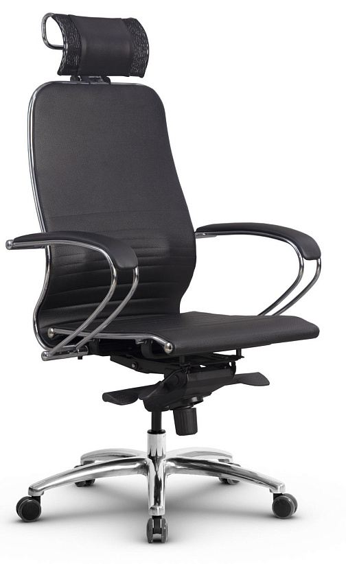 Кресло Samurai K-2.04. Обивка - экокожа, цвет черный. Съемный 3D подголовник. Хромированная крестовина. Синхромеханизм. Нагрузка до 150 кг.
