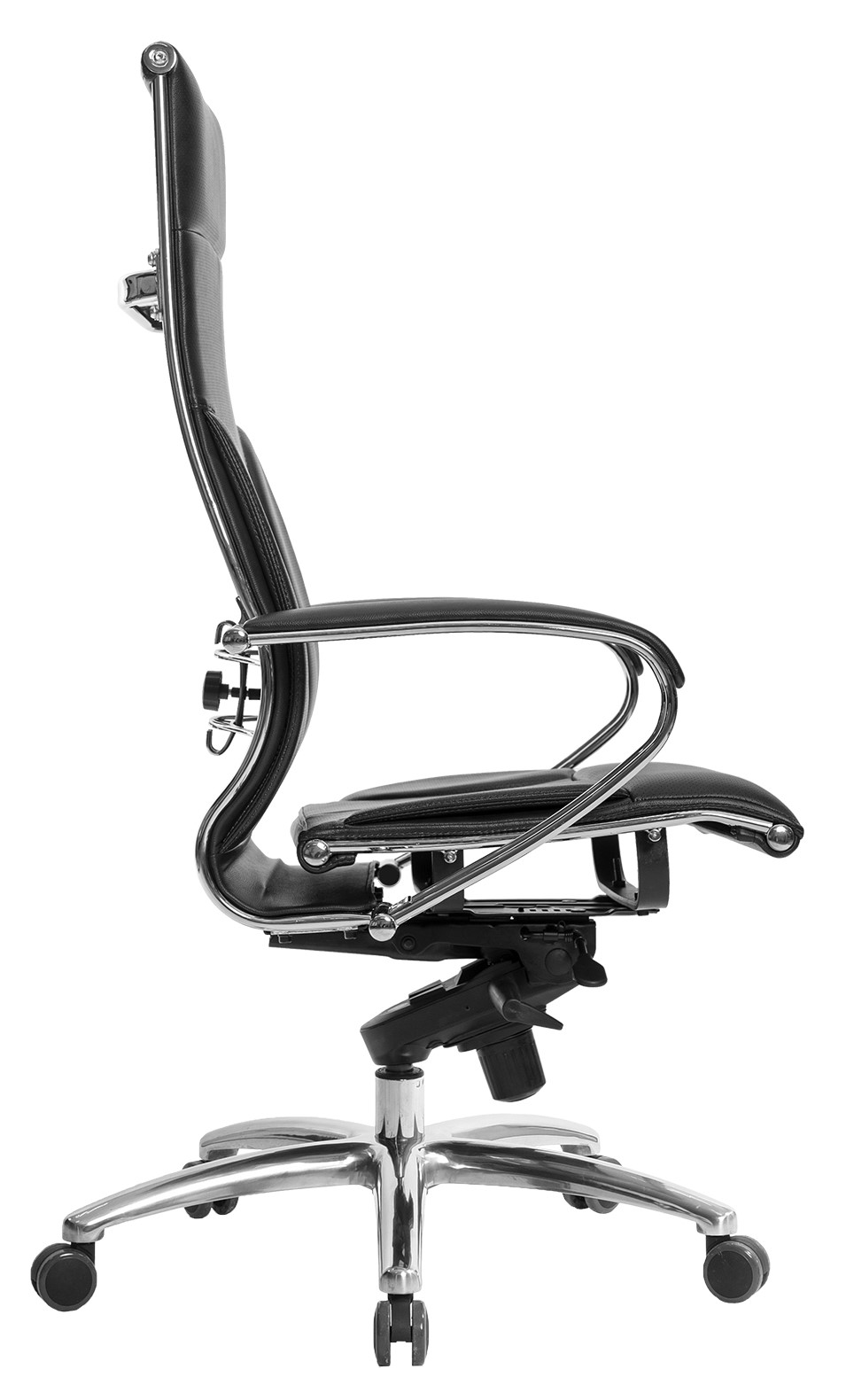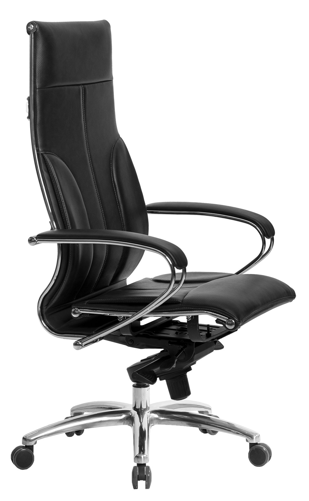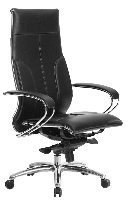 Кресло Samurai Lux. Обивка - экокожа, цвет черный. Хромированная крестовина, Металлические подлокотники с мягкими накладками. Синхромеханизм. Нагрузка до 150 кг.