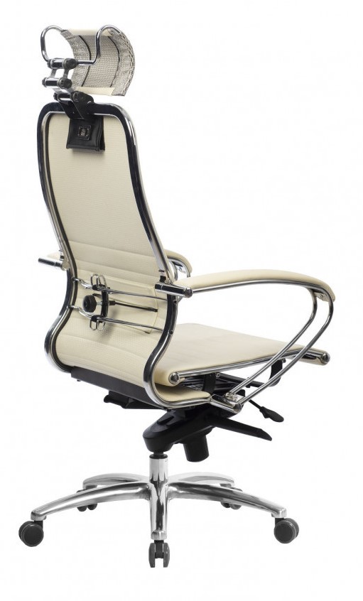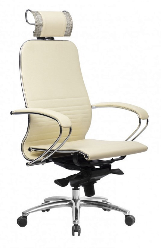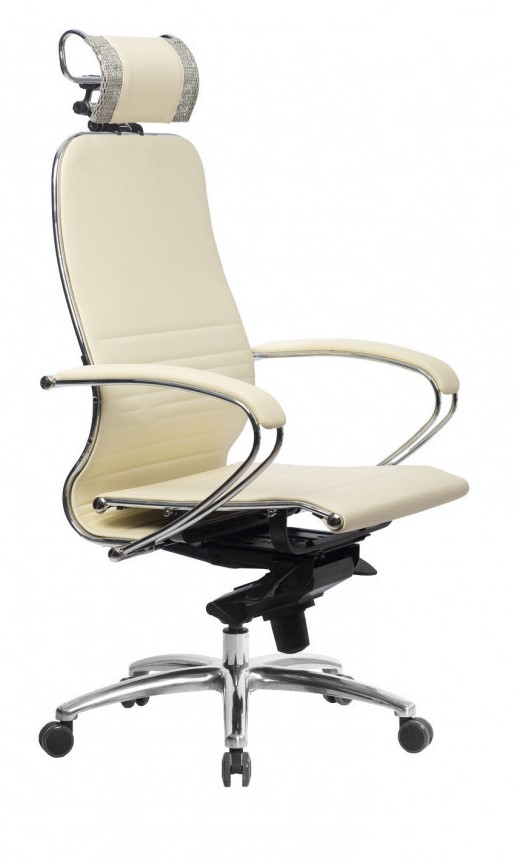 Кресло Samurai K-2.04. Обивка - экокожа, цвет бежевый. Съемный 3D подголовник. Хромированная крестовина. Синхромеханизм. Нагрузка до 150 кг.