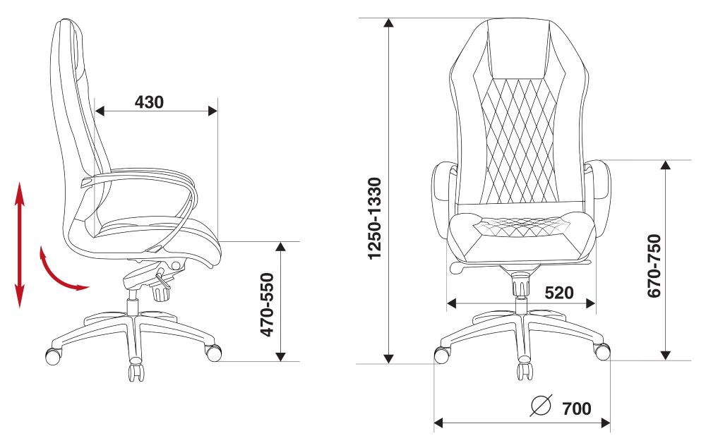| Подлокотники | металлические с мягкими накладками |