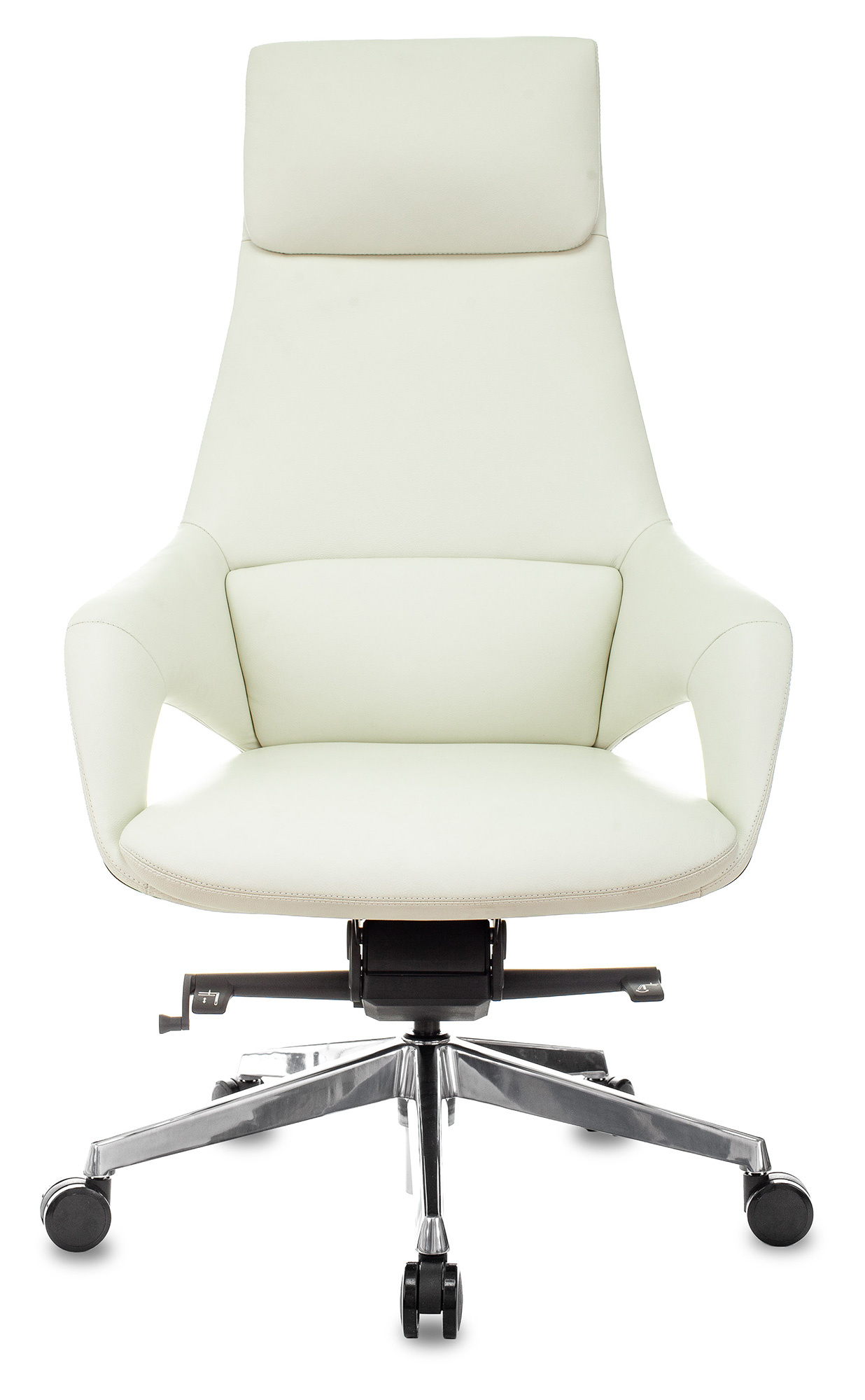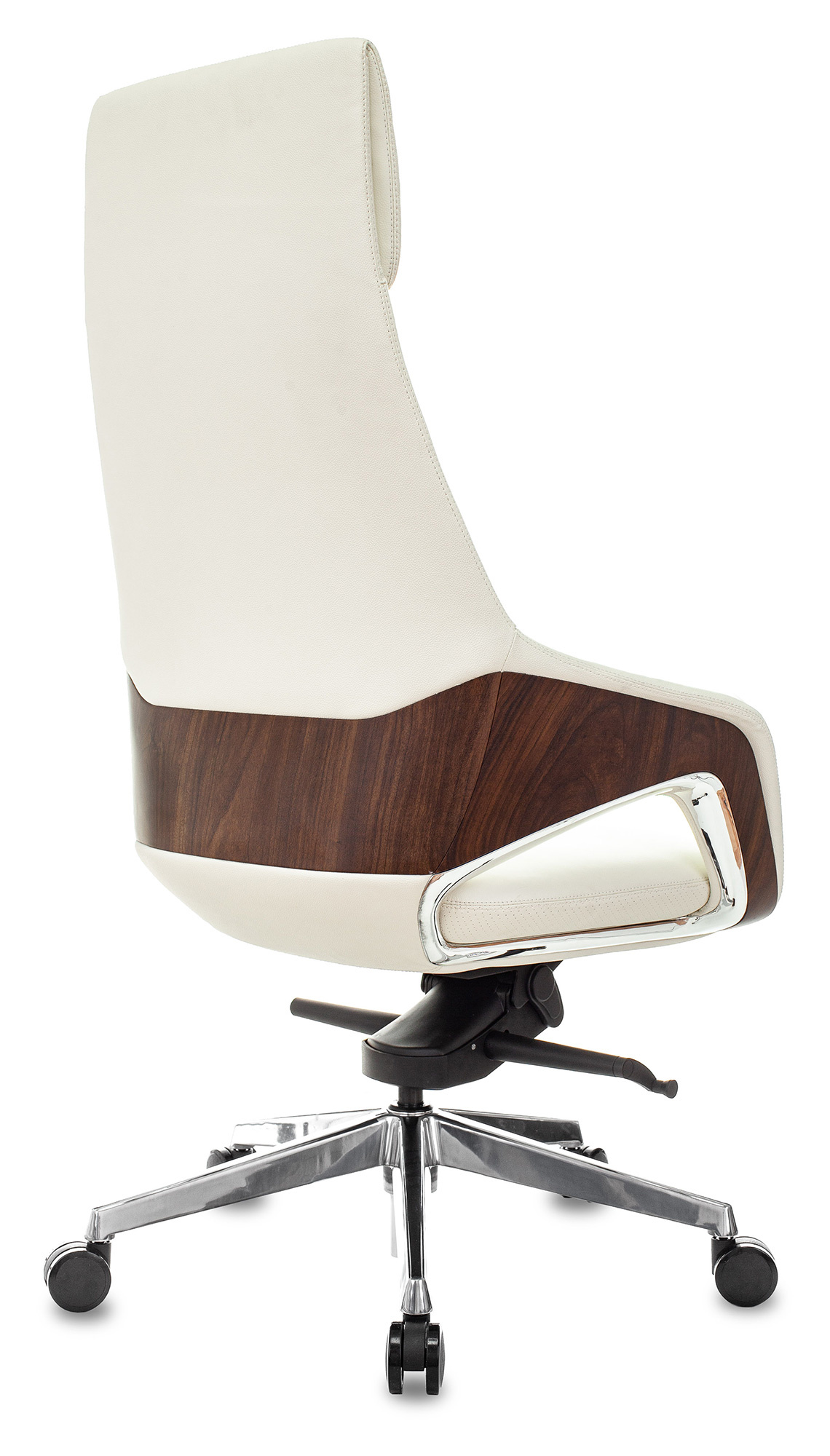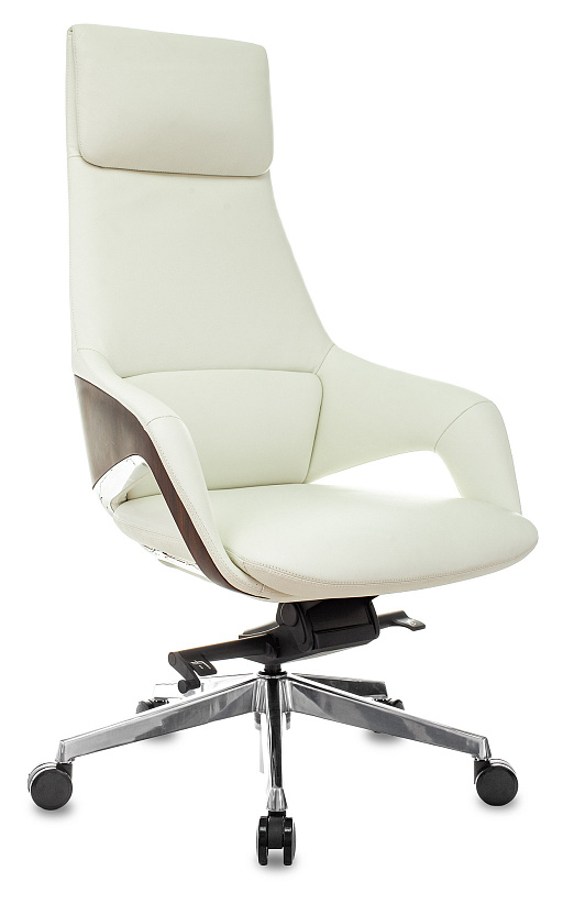 Современное кресло руководителя DAO-2 белая кожа, крестовина алюминий, оснащено механизмом качания с фиксацией в нескольких положениях, максимальная нагрузка до 150 кг, Подлокотники монолитные кожаные с пластиковыми вставками под дерево.