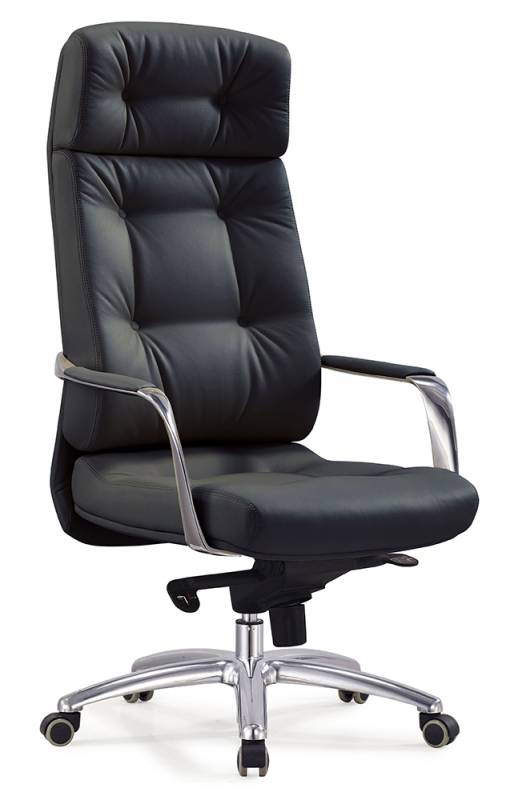 Современное кресло руководителя DAO черная кожа. Крестовина из полированного аллюминия. Оснащено механизмом качания с фиксацией в нескольких положениях. Максимальная нагрузка до 150 кг. Металлические подлокотники с кожаными вставками.