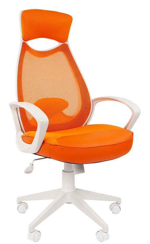 ОБНОВЛЕНИЕ КОЛЛЕКЦИИ. ГОРЯЩАЯ ЦЕНА! Кресло Chairman СН-840. Обивка - ткань/сетка, цвет оранжевый. Пластиковая белая крестовина, Механизм Топ-Ган. Нагрузка до 120 кг. НВ