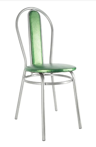 Стул Венский круглый. Обивка - зеленая экокожа №27. Хромированный металлический каркас. Нагрузка до 120 кг.