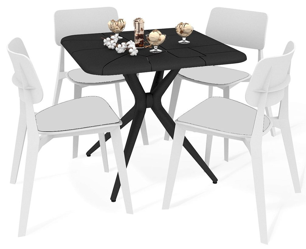 Комплект обеденная группа Sheffilton SHT-DS194 стол пластик цвет черный 835х835х735мм (ШхГхВ) + 4 стула пластик, цвет белый, 565х510х430/915 (ШхГхВ)