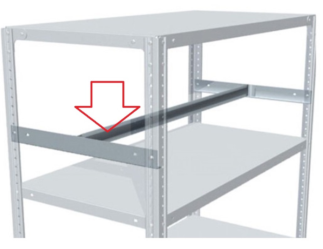 Продольный разделитель является дополнительным элементом металлического быстро-сборного стеллажа.