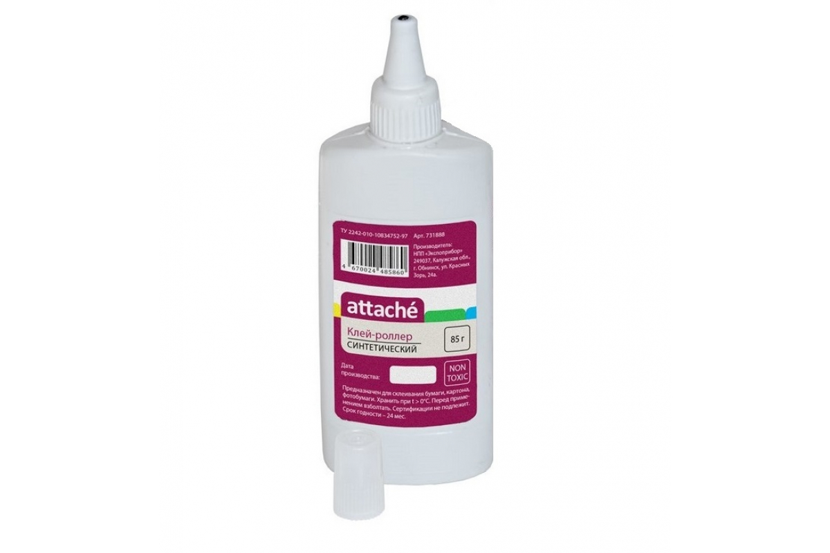 Клей синтетический 85 г. Нетоксичен, безопасен для детей. Предназначен для склеивания бумаги, фотобумаги, картона. Клей наносится тонким слоем, обеспечивая быстрое схватывание поверхностей, а так же экономное расходование клея. Удобный флакон оснащен крышкой-дозатором с металлическим роллером, который обеспечивает равномерность и точность нанесения клея, а также предохраняет от пересыхания при хранении.