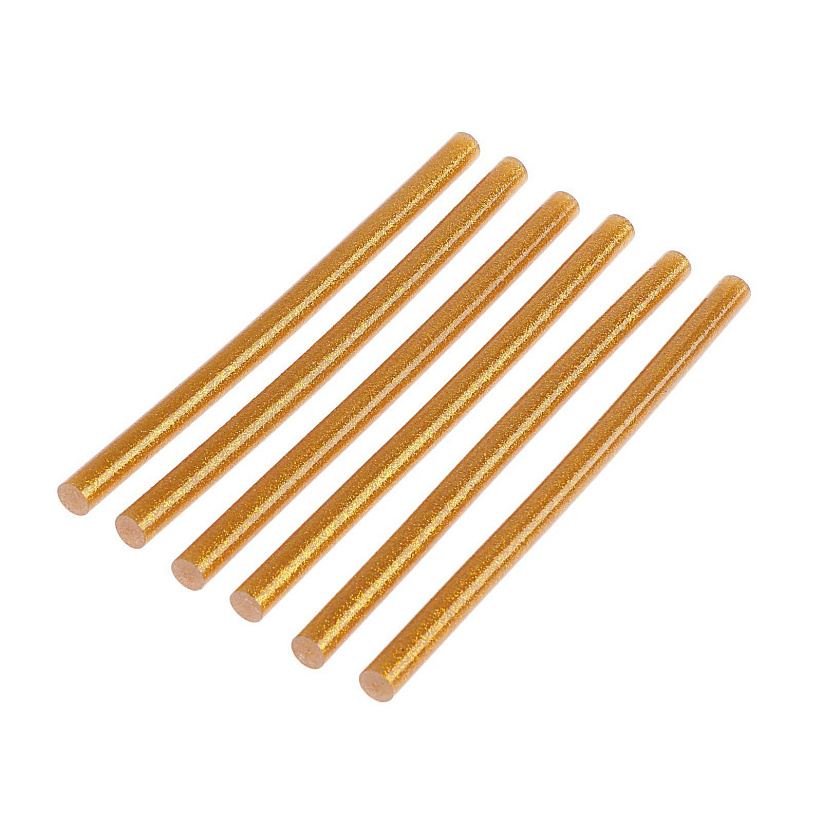 Клеевые стержни, 11 х 200 мм, цвет золотистый с блестками, 6 штук в упаковке, габариты: длина 20 см., ширина 8 см., высота 1 см.