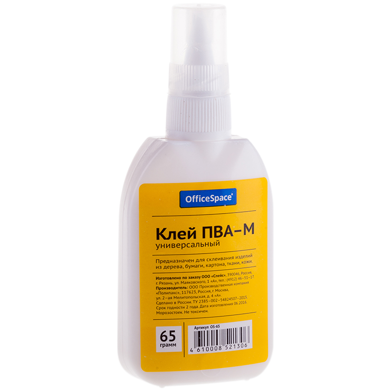Клей ПВА OfficeSpace в пластиковой бутылочке с дозатором, 65гр