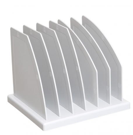 Подставка предназначена для размещения журналов и бумаг форматов А4, А5. Возможна установка перегородок в вертикальном и горизонтальном положениях. Простая сборно-разборная конструкция, имеет 6 отделений. Удобно транспортировать и хранить.