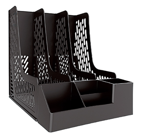 Вертикальный накопитель с органайзером 3 отдела Deli EZ00122 пластиковый, размеры 255х320х275мм, цвет черный