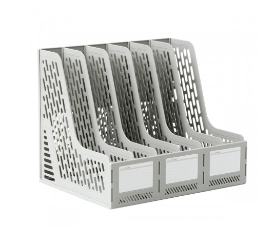 Вертикальный накопитель 5 отделов Deli E9838 пластиковый, складной, размеры 335х250х260мм, цвет серый