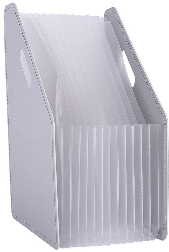 Лоток складной, вертикальный с 13 прозрачными отделениями, по необходимости можно экономить рабочее место.. Полипропилен, серого цвета, для документов формата А4.