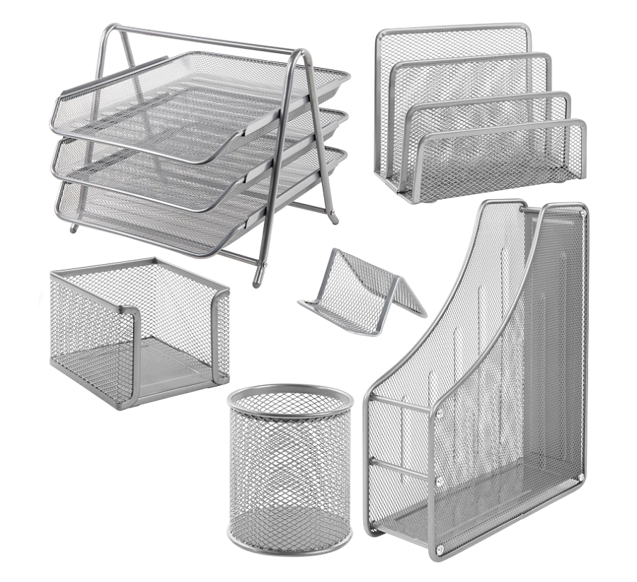 Набор офисный BRAUBERG "Germanium" 6 предмета, металлическая сетка, серый