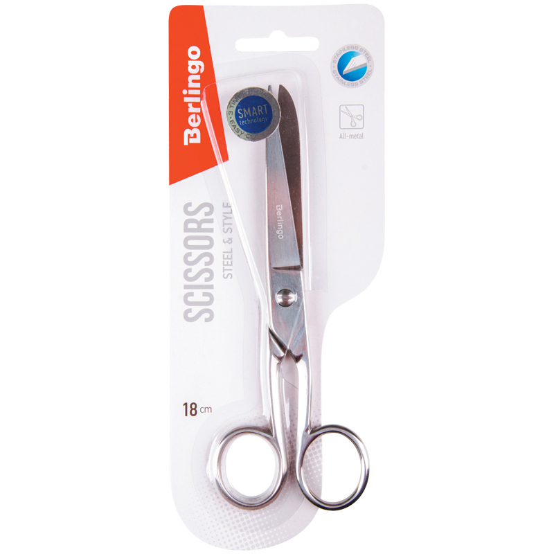 Ножницы 180 мм "Berlingo", "Steel&Style" цельнометаллические, для работы с бумагой, картоном, тканью и пленкой