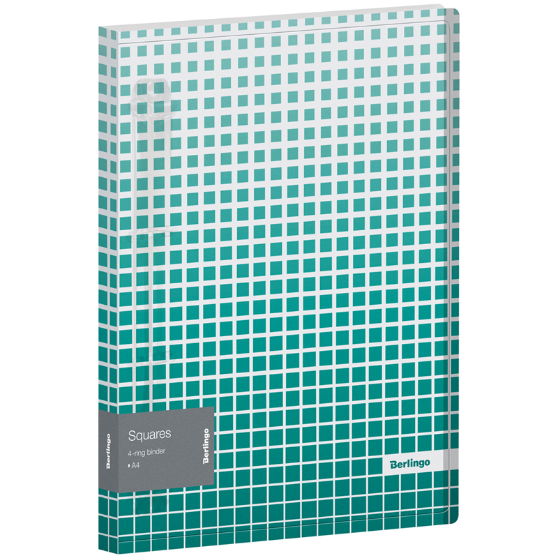 Папка на 4 кольца корешок 24мм Berlingo "Squares" пластик, плотность 600 мкм, внутренний карман, цвет белый/зеленый