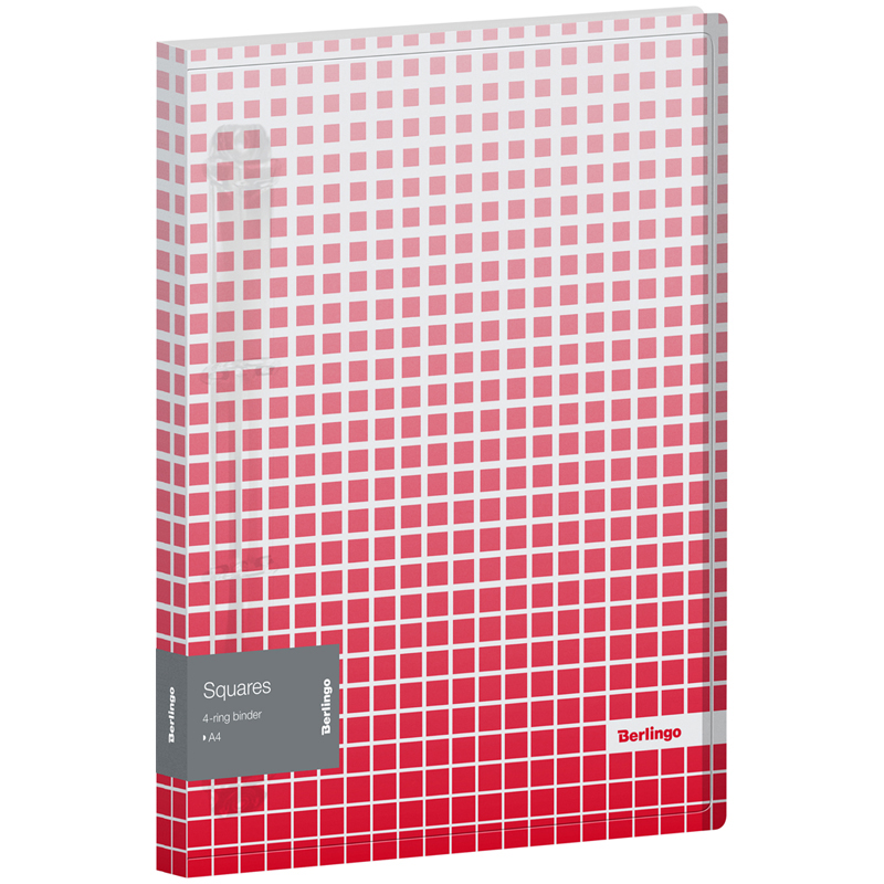 Папка на 4 кольца корешок 24мм Berlingo "Squares" пластик, плотность 600 мкм, внутренний карман, цвет белый/красный