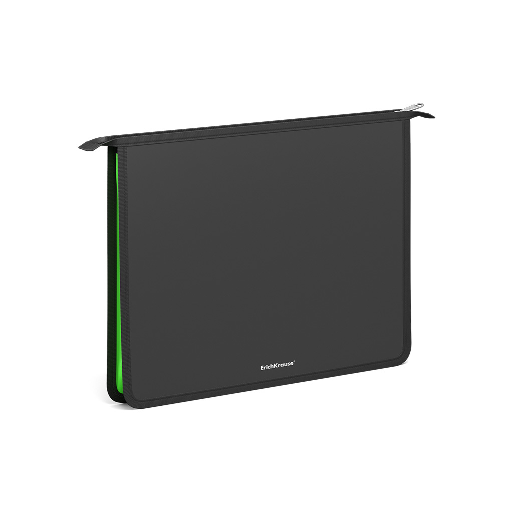 Папка на верхней молнии формата А4 из высококачественного пластика с текстурой поверхности "песок", на которой не видно отпечатков пальцев и мелких царапин. Предназначена для хранения и транспортировки документов. Надежная молния с мягким ходом обеспечивает быстрый доступ к бумагам. Папка вмещает до 300 бумажных листов. Цвет папки - чёрный; цвет молнии и текстильной вставки - ассорти: желтый, зеленый, оранжевый, розовый. Размер - 330x245x45мм, толщина - 0.5мм. Код и баркод на каждой единице товара.