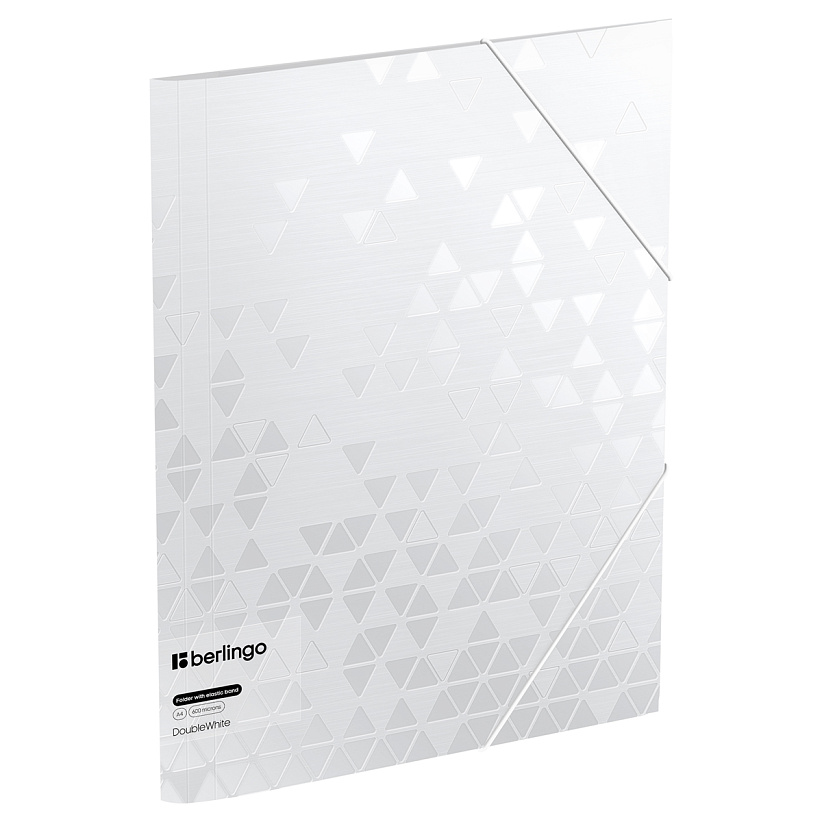 Папка изготовлена из высококачественного полипропилена с матовой текстурой поверхности «рельефные треугольники», на которой не видно отпечатков пальцев и мелких царапин. Толщина обложки 600 мкм. Элегантный белый цвет папки отлично впишется в любое рабочее пространство. Надёжные застёжки-резинки помогают избежать повреждения документов и легко открываются.
