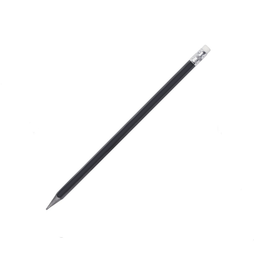 Изготовлен из пластика, оснащен ластиком. Имеет шестигранное сечение. Карандаш длиной 187 мм легко точится и не крошится. Выполнен в черном цвете. Поставляется заточенным.