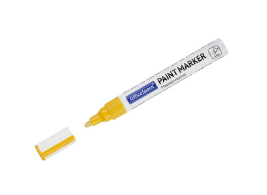 Маркер OfficeSpace 1-4мм для промышленной графики желтый лаковый. Подходит для использования на металлических, деревянных, стеклянных и пластиковых поверхностях