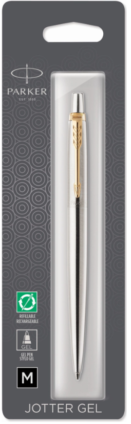 Ручка гелевая PARKER Jotter Core K694 Stainless Steel GT M, черный стержень. Корпус: нержавеющая сталь, цвет отделки: золотистый. Блистер.