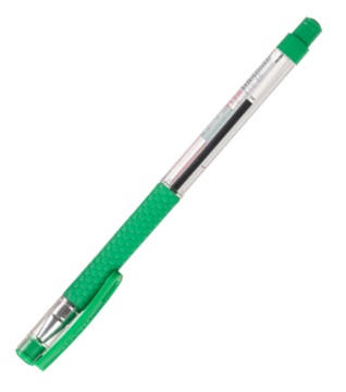Ручка шариковая: на масляной основе: "Piano"; пластиковый прозрачный корпус, резиновый держатель, прозрачный колпачок с цветным клипом /в цвет чернил/, зелёная,0,5 mm.